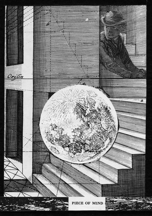 Desde principios de los años ochenta comencé a trabajar en collages inspirados en los collages de Max Ernst. Es un error pensar que Ernst fue el inventor del collage; los antecedentes son muchos y de muy diversa índole: desde los ex-votos y los Valentines de Inglaterra hasta los papiers collés de Picasso y Braque. Pero el sentido profundo del collage tal como lo praticó Ernst, tiene que ver con la aplicación sistemática del “delirio” de Rimbaud: “Me acostumbré a la alucinación simple: veía una mezquita en vez de una fábrica… un salón al fondo de un lago… calesas en los caminos del cielo…” El collage así entendido determinó un encuentro decisivo entre las artes visuales y la poesia. Hasta el día de hoy no he dejado de hacer este tipo de collage, y es por ello que tantos de mis trabajos en esta línea no están fechados.